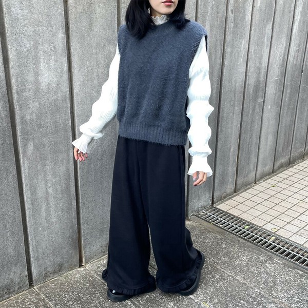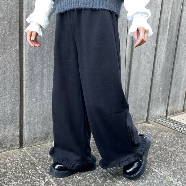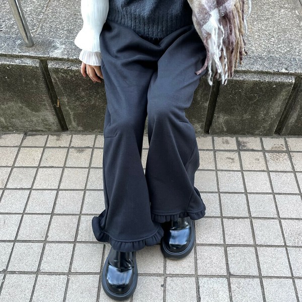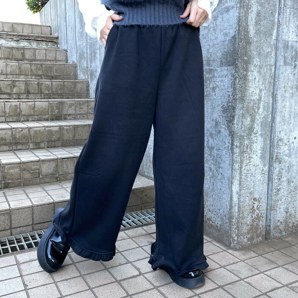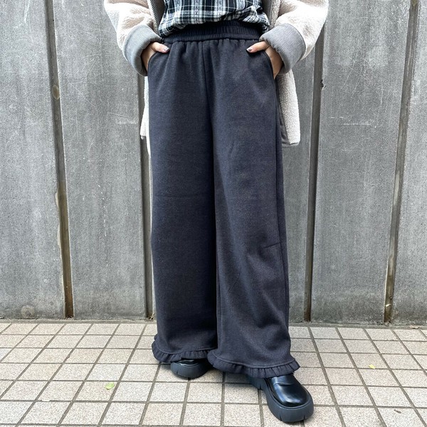 【2025新作】暖裾フリルパンツ 防寒 裏起毛 ワイド ゆったり 大人カジュアル 秋服 冬服