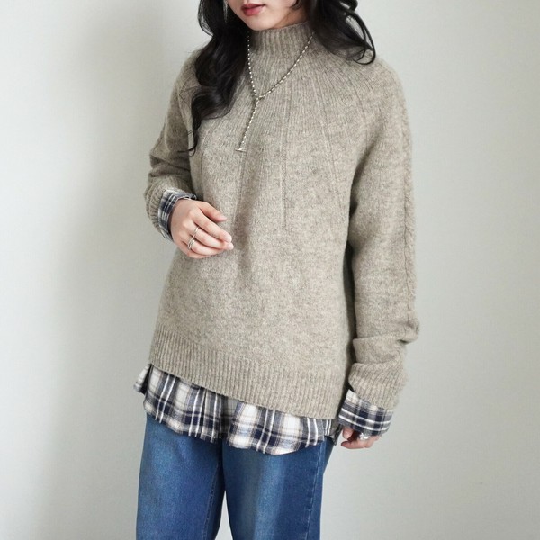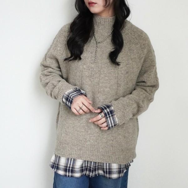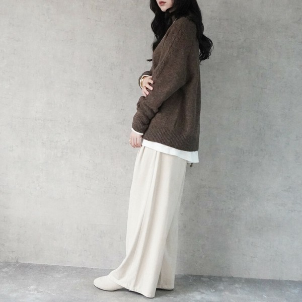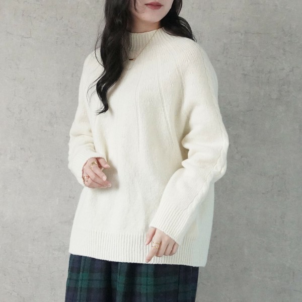 「日本製」ウール100%アラン柄求心ニットプルオーバー セーター ハイネック 2025秋冬新作【】