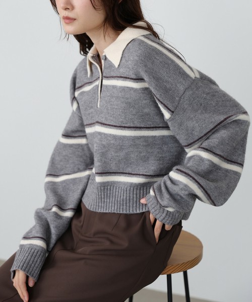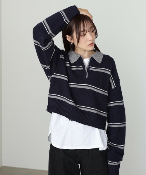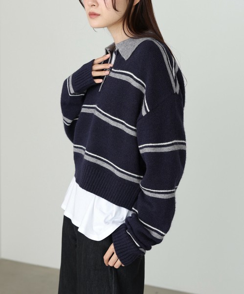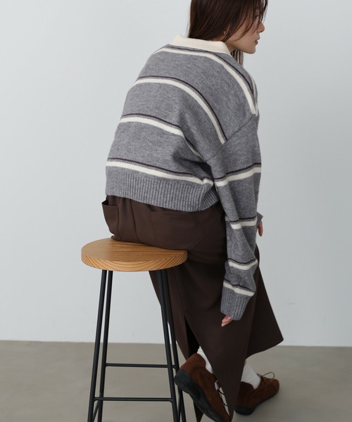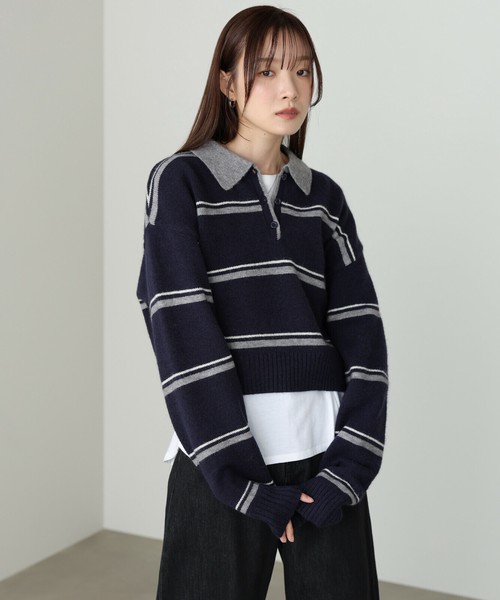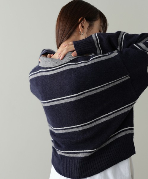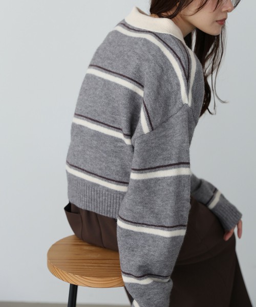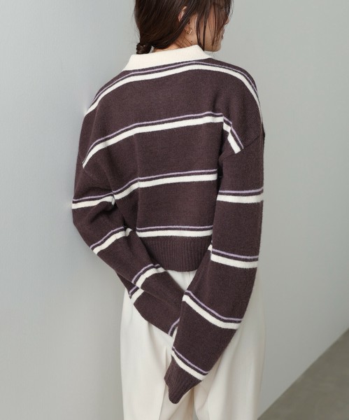 【2025秋冬新作】マルチボーダーポロニット◇柔らかな配色のボーダーが大人かわいい印象に