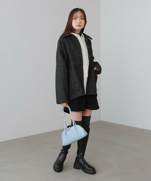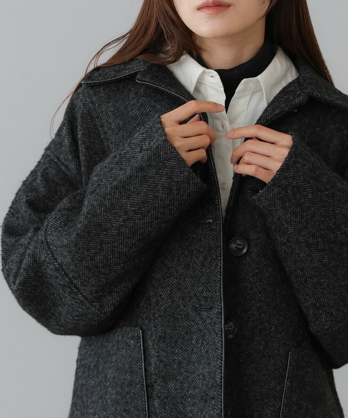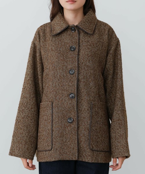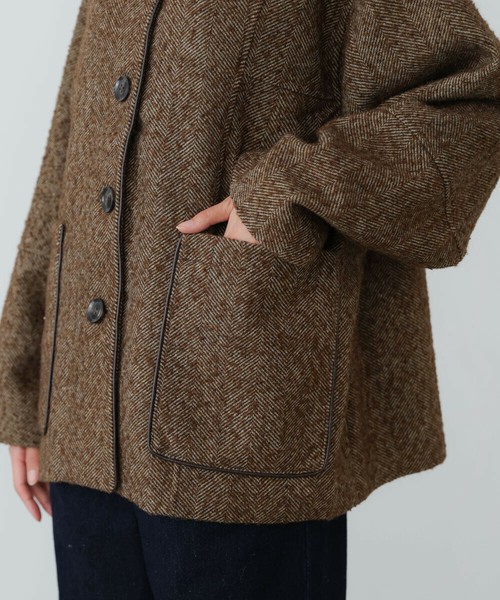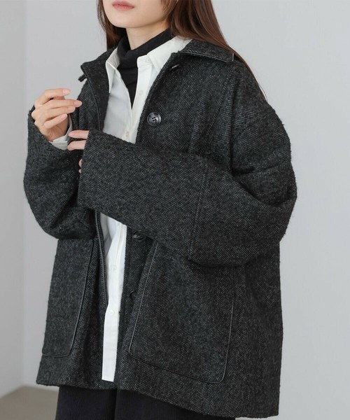 【2025秋冬新作】ヘリンボーンツイードカバーオールジャケット◇タオル地のような柔らかさを感じる素材感