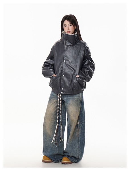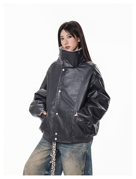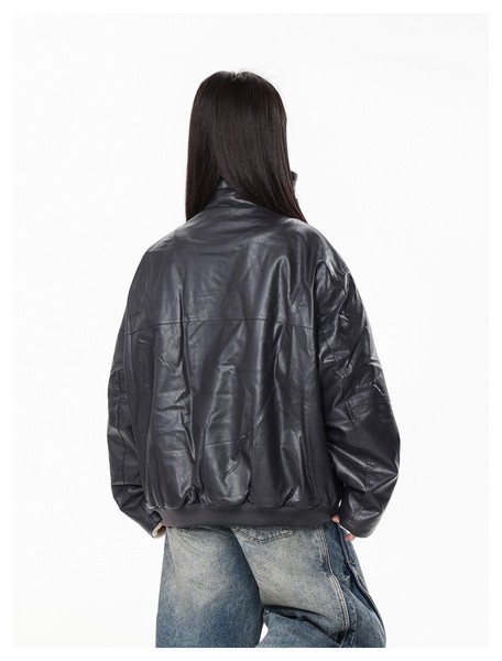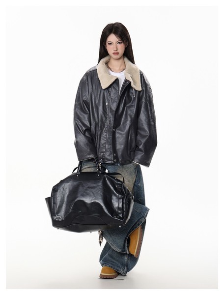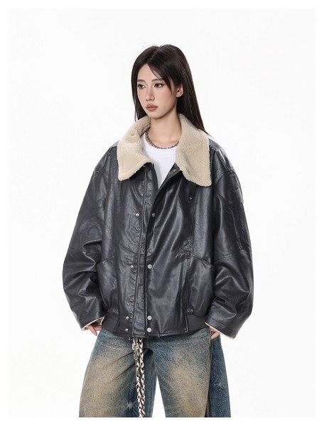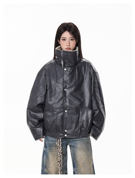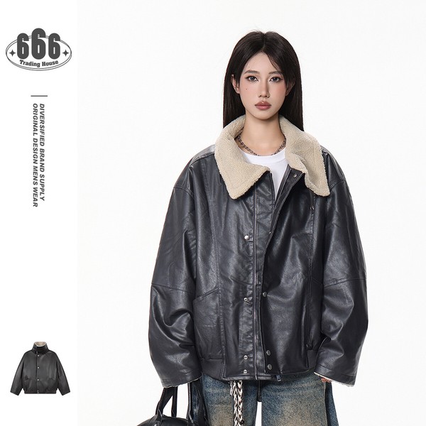 P23636アメリカン レトロ ジャケット PUレザー コート ユニセックス 2025冬新作