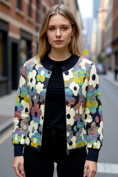 【2025冬物新作】【日本製】花柄ジャガードカーデ