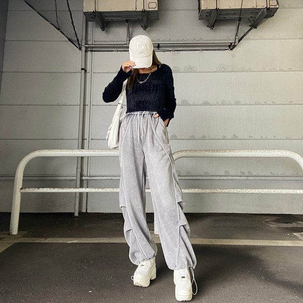 【再入荷】【2026新作】ブリーチラインカットパンツ スウェットパンツ ボリュームパンツ 2WAY
