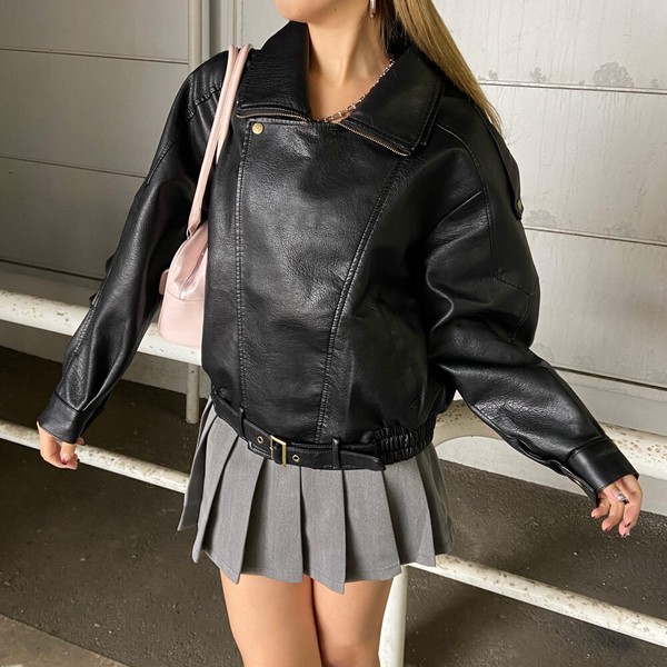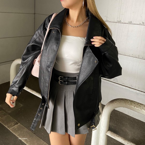 【2026新作】ビッグライダースジャケット 合成皮革 フェイクレザー アウター コート ブルゾン
