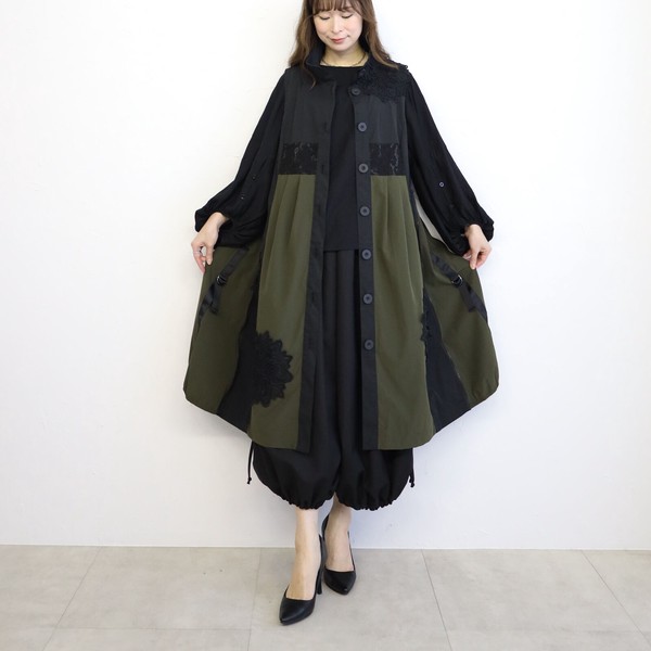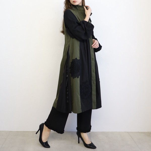 【2026新作 BRILLANTE by mode】豪華花レースモチーフストレッチ素材ツートンロングベスト BRILLANTE大阪