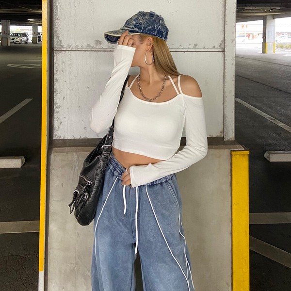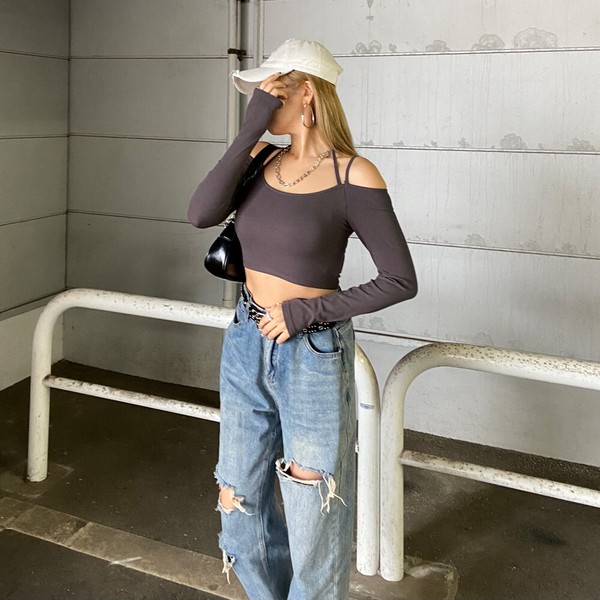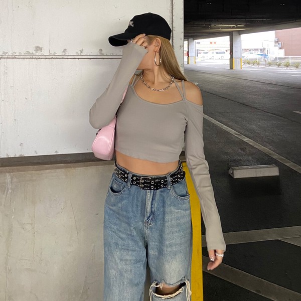 【2026新作】2連リブトップス デコルテ ショート丈 コンパクト ホルターネック 春トップス 春服