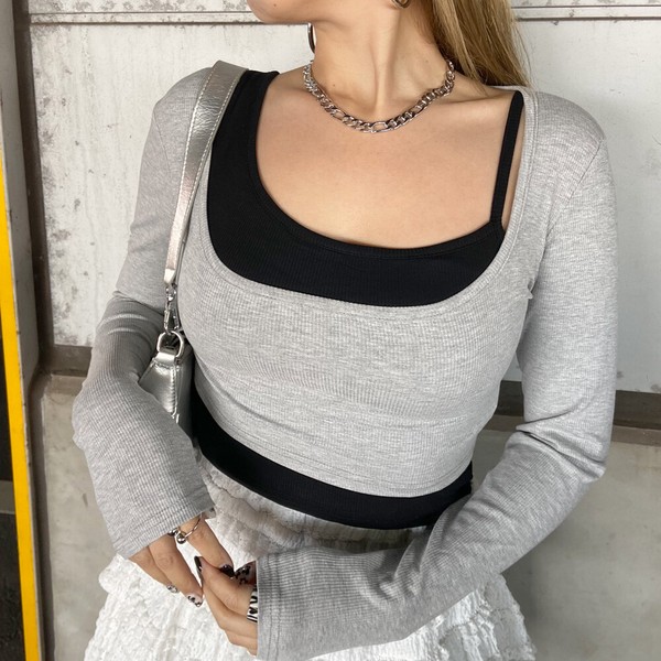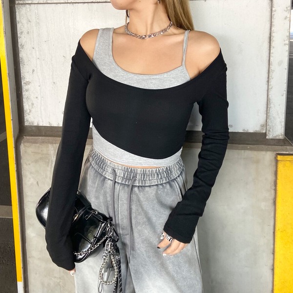 【2026新作】インナー付きショートトップス アンサンブル オフショルダー パッド付き 春服 夏服