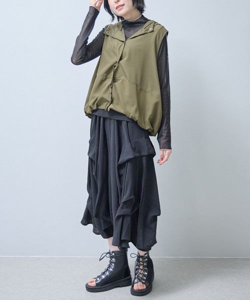 サムホール付きサイドスリットシアートップスルーズ感のあるシルエットと、シアー素材がトレンド感のあるサムホール付きトップス。インナーにはブラトップやキャミソールなどをレイヤードするのがおすすめです。サイドにスリットが入っているので抜け感のある印象に。