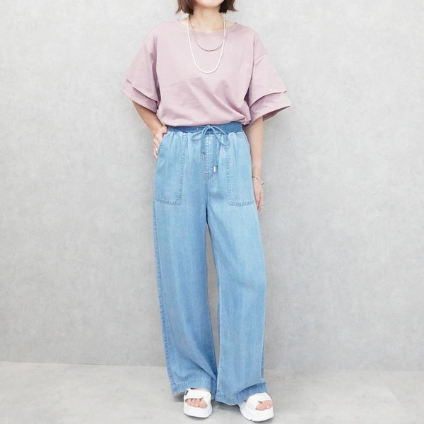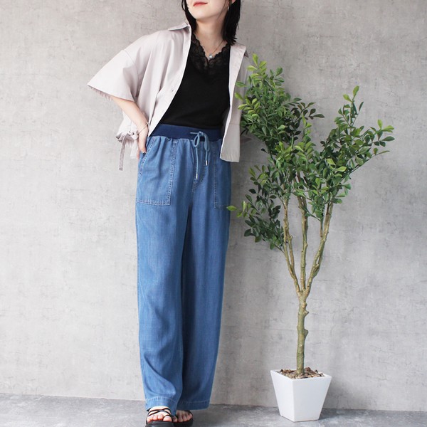【2026SS早割】ウエストリブベイカーワイドパンツ なめらか 再生繊維セルロース エコ 2026春夏新作【】