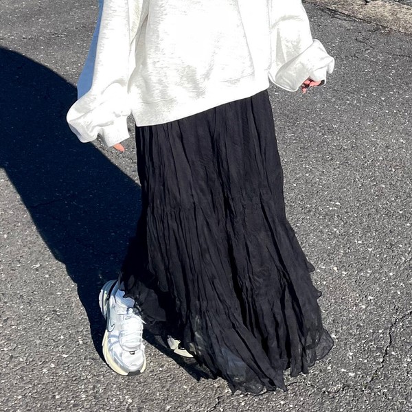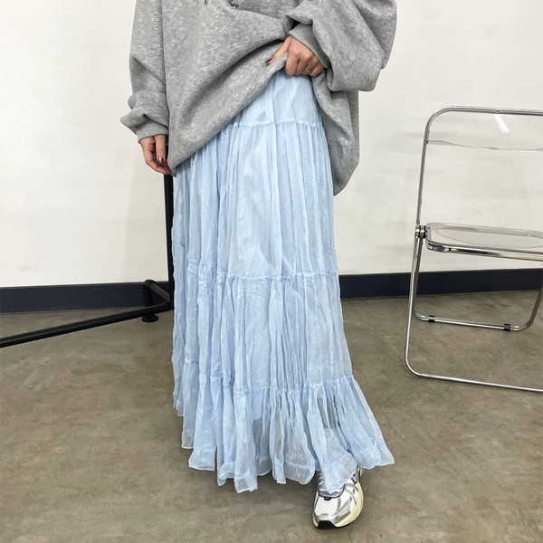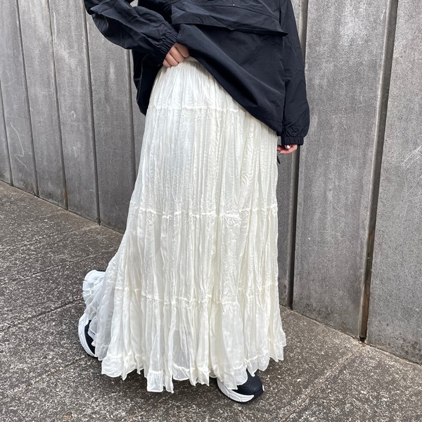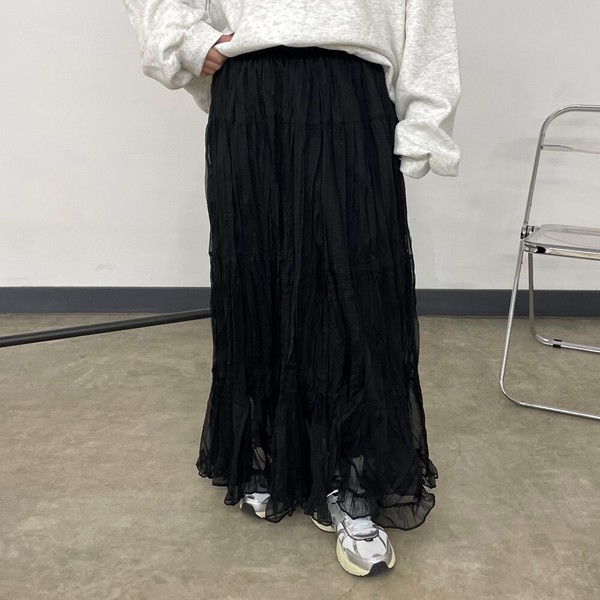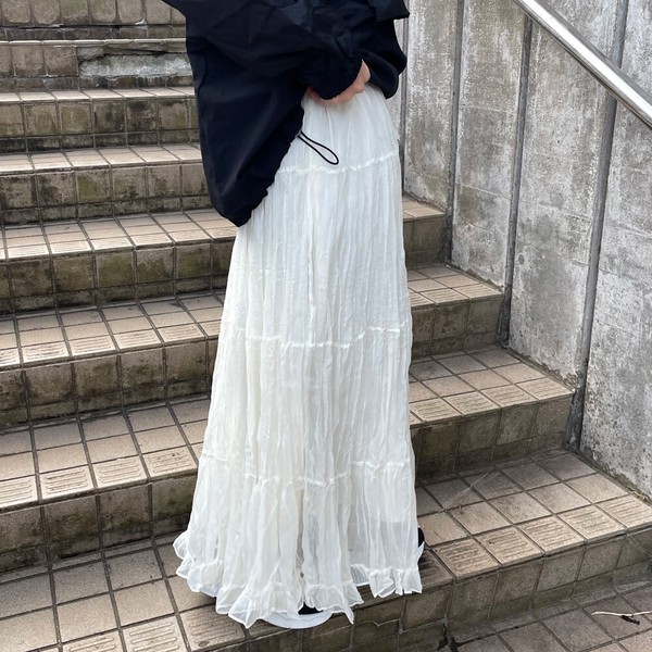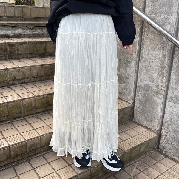 【2026新作】ティアードスカート ゆったり 楽ちん ロング 春夏秋冬 チュール シアー 透け