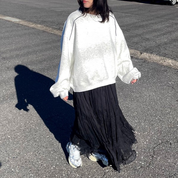着丈88cm、ウエスト60cm(ゴム仕様)、ヒップ106cm、すそ周り240cm