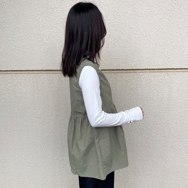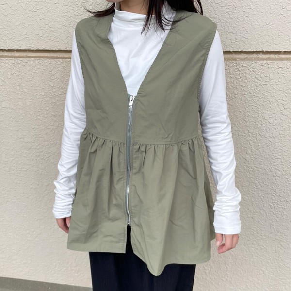 【2026新作】ZIPフリルベスト 重ね着 レイヤード 春 夏 秋 冬 ノースリ フレア 大人 ジレ