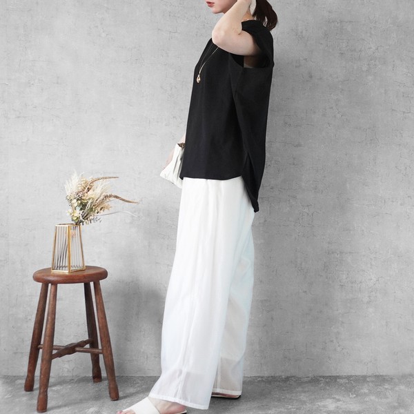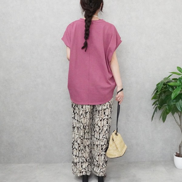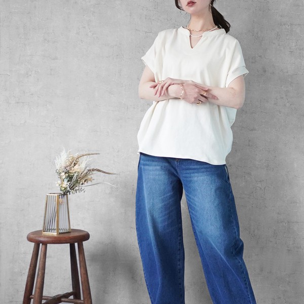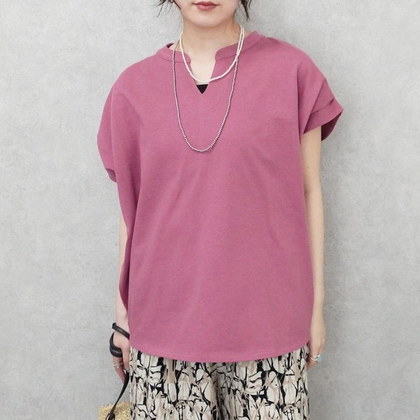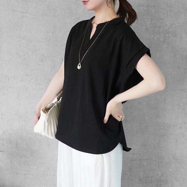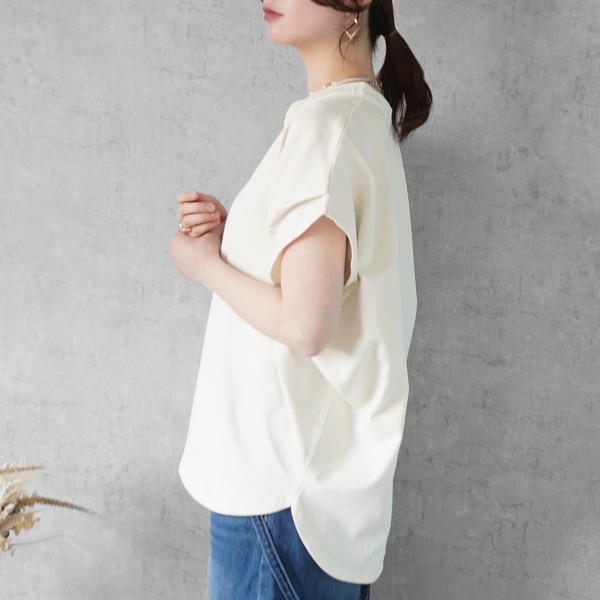 【2026SS早割】天竺キーネックフレンチスリーブTシャツ ラウンドヘム 半袖 トップス 2026春夏新作【】