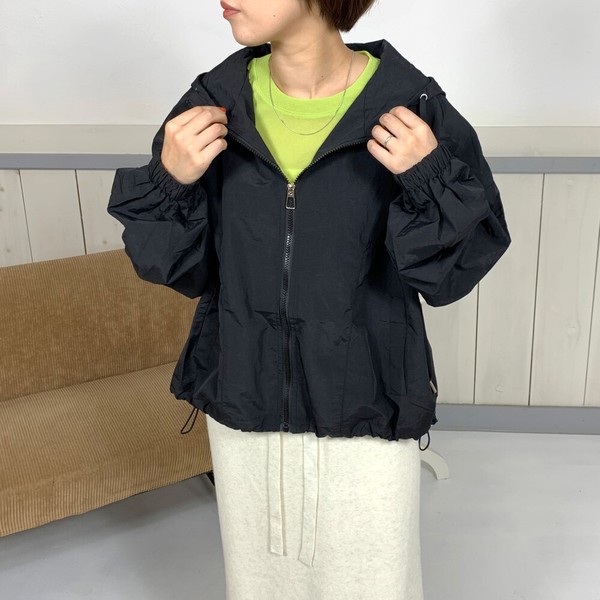 ギャザーでふんだんにボリュームを出したシアーブルゾン。カーディガン感覚でラフに羽織れる仕上がりです。特にお袖のふくらみでフェミニンな印象ながら、カラーリングが大人なアースカラー展開なので甘くなりすぎず大人可愛いスタイルに。袖口のレースゴムがアクセントです。肩上部分は二重仕上げなので、透けすぎる心配はありません。着脱はフロントジップで、裾のドロストでシルエットを遊べます。